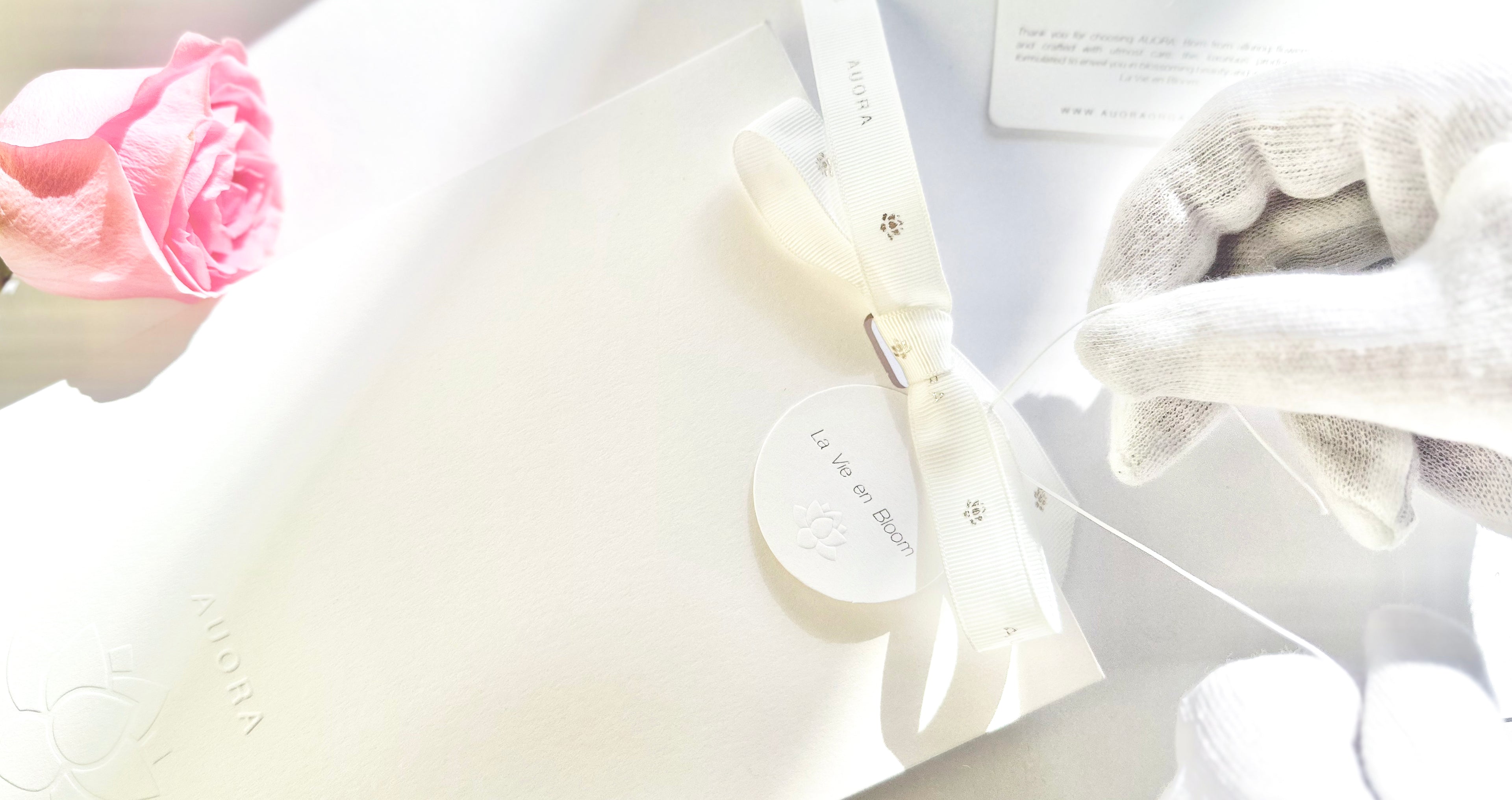 Jedes AUORA-Produkt zelebriert die Einzigartigkeit der Blüten der Natur und ist ein einzigartiges Meisterwerk, das die Essenz der Individualität der Natur mit authentischen Blumen einfängt und so sicherstellt, dass jedes Produkt wirklich einzigartig ist. Jede Kreation ist mit einem Handwachsstempel versiegelt und in einer luxuriösen Pappschachtel präsentiert. Sie verkörpert den Inbegriff von Luxus und spiegelt unser Engagement für Perfektion wider.