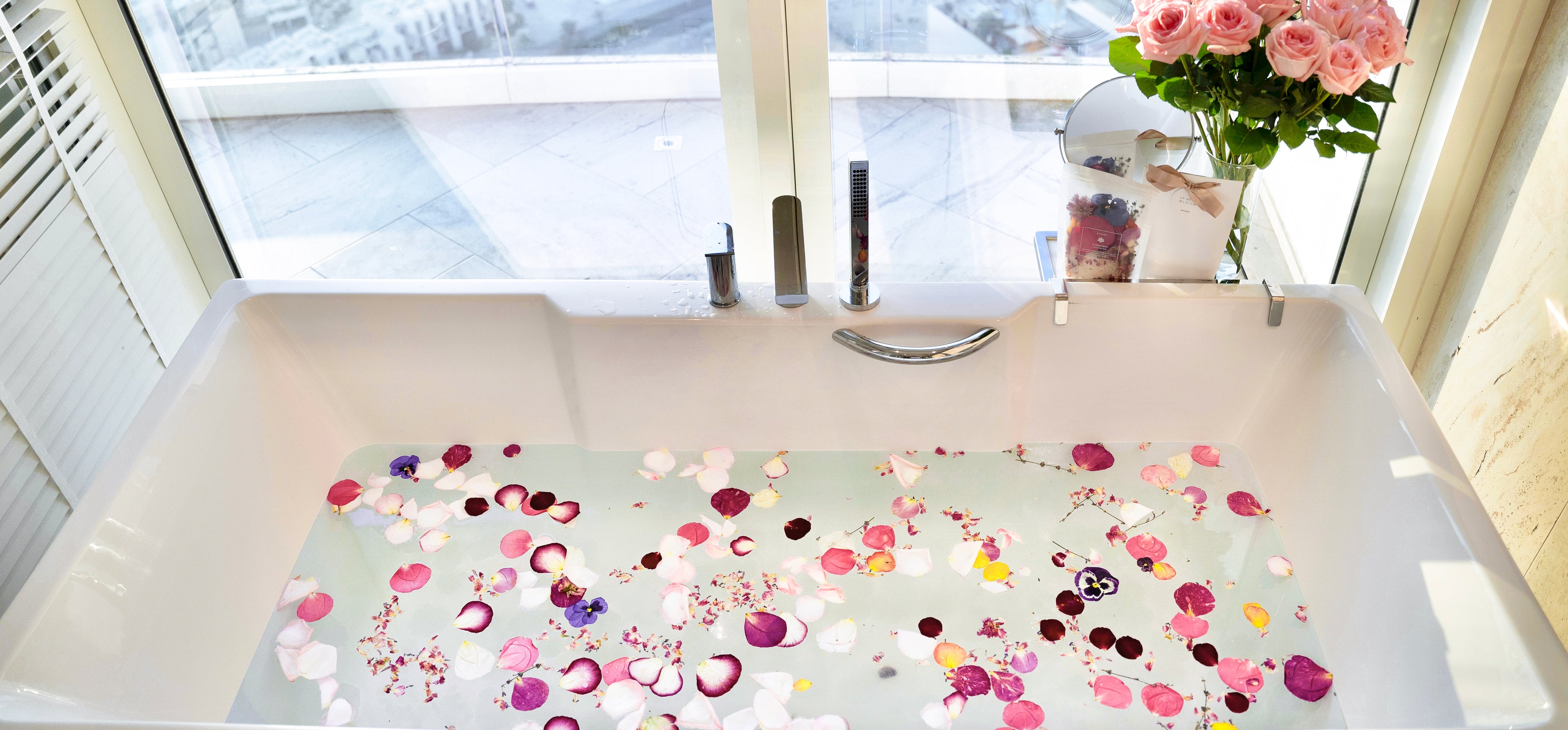 Gönnen Sie sich das ultimative Verwöhnerlebnis, bei dem jedes Element des Flower Bath so formuliert ist, dass es Ihren Sinnen einen luxuriösen und verwöhnenden Rückzugsort bietet.